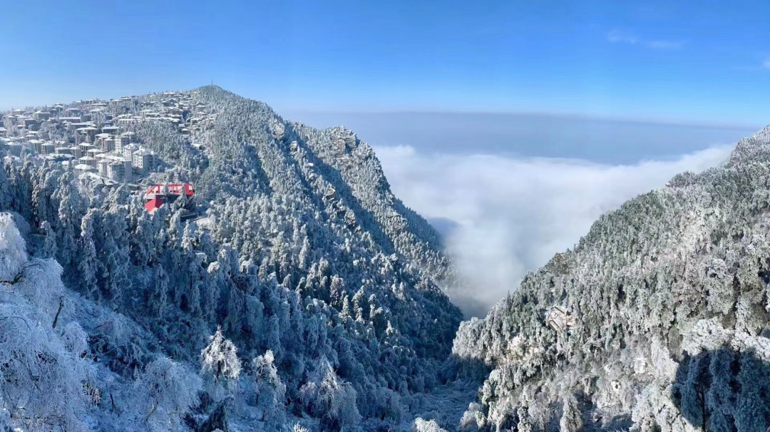 在江西九江这座国家历史文化名城,有着中华十大名山之一的庐山。近日,庐山下起了冬天的第一场雪,山间云雾笼罩、银装素裹,宛如仙境。